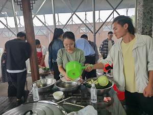 農(nóng)家柴火土灶對(duì)90后們更是一場(chǎng)考驗(yàn),隨機(jī)分成3組,各小組成員分工合作,生火、洗菜、切菜、掌勺.....隊(duì)友們一起商討配菜、生火技巧、切菜形狀,實(shí)在動(dòng)不了手的隊(duì)友就剝蒜、搬柴、洗碗。